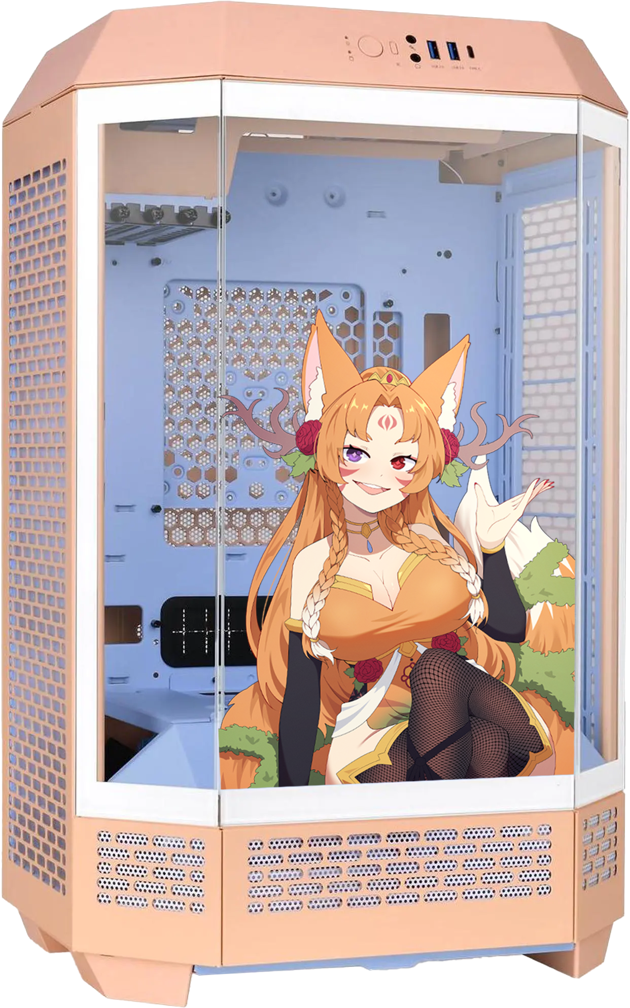 The Mozi Case is a specialized PC Case that integrates Vtuber AutumnMozilla's custom model as a vinyl sticker for a unique visual identity.